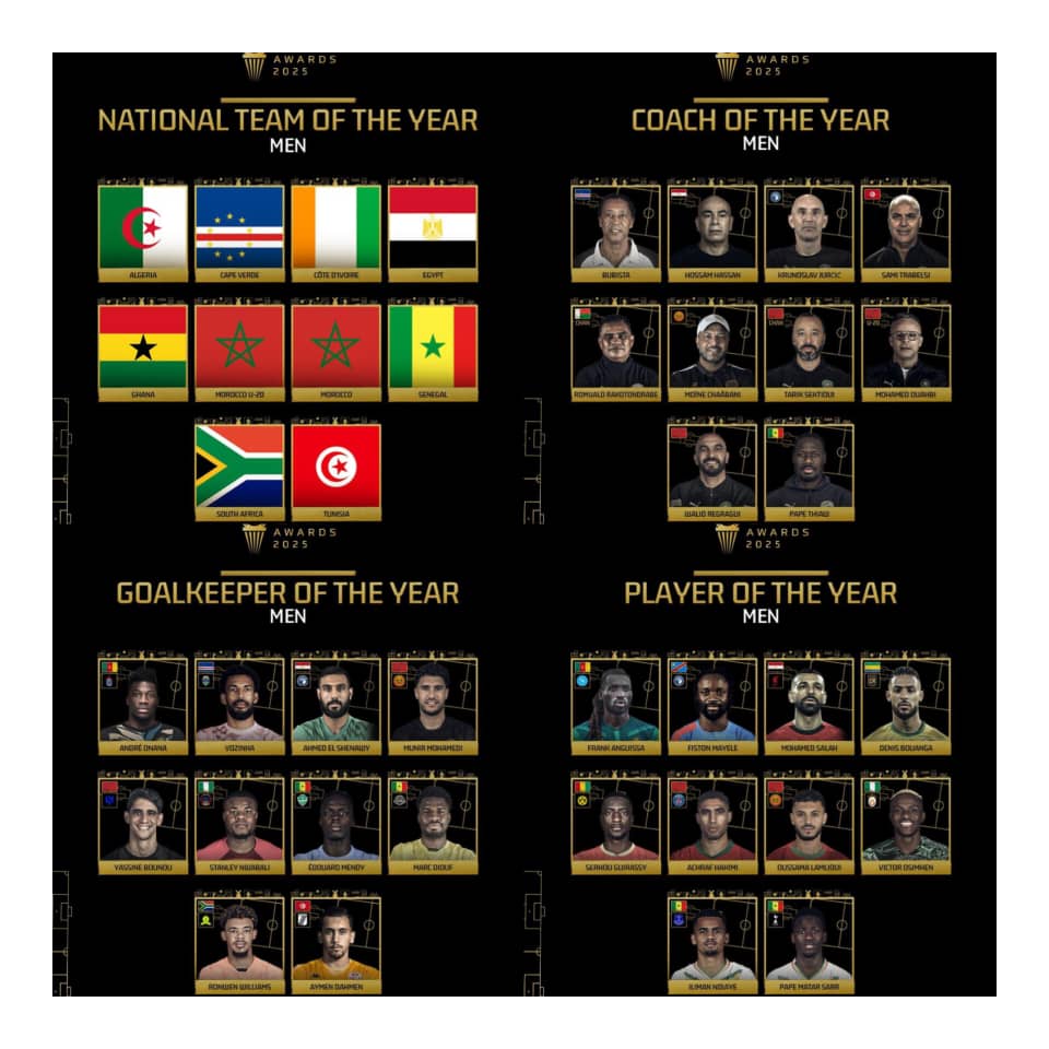 La CAF a indiqué que la sélection des nominés repose sur les performances enregistrées tant en clubs qu’en équipes nationales, notamment lors des compétitions africaines et internationales disputées en 2025.