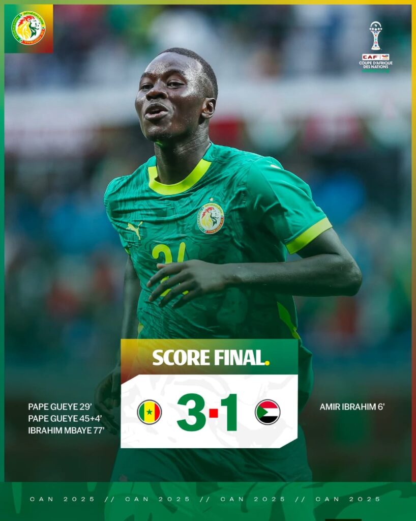 Le Sénégal s’est qualifié pour les quarts de finale de la CAN 2025 en dominant le Soudan (3-1), au terme d’un match marqué par une entame surprise et une réaction d’autorité des Lions.