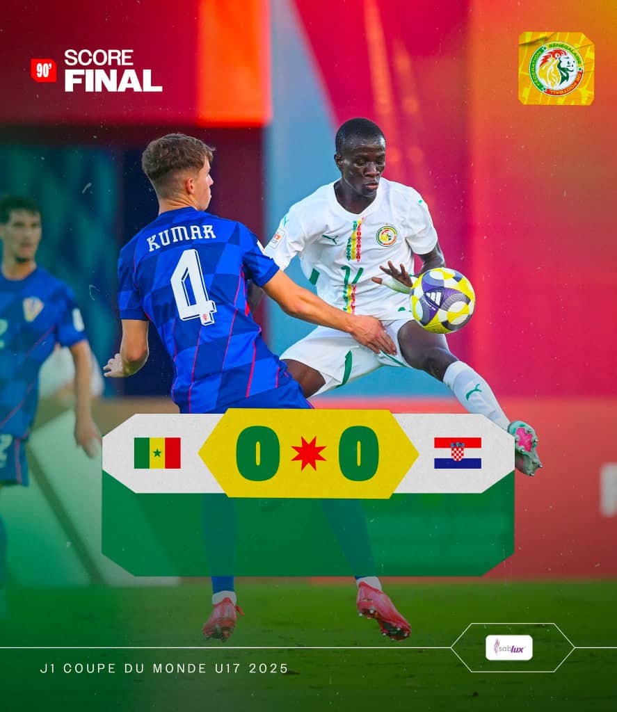 Pour son entrée en lice à la Coupe du Monde U17 2025, le Sénégal a concédé le nul face à la Croatie (0-0), ce lundi, dans le groupe C. Les Lionceaux, dominateurs par séquences, ont pourtant eu plusieurs occasions franches par Étienne Mendy et Bakary Sonko, sans parvenir à concrétiser.